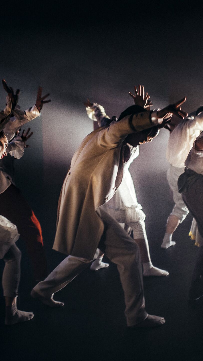The energetic Clowns (2016), Hofesh Shechter’s first creation for NDT, studies the complexity of being alive, of fighting for shared values, and the raw, human desire for liberation. Just like clowns did for queens and kings in eras past, Shechter holds up a mirror to his audience, revealing the truth of life in the guise of entertainment.